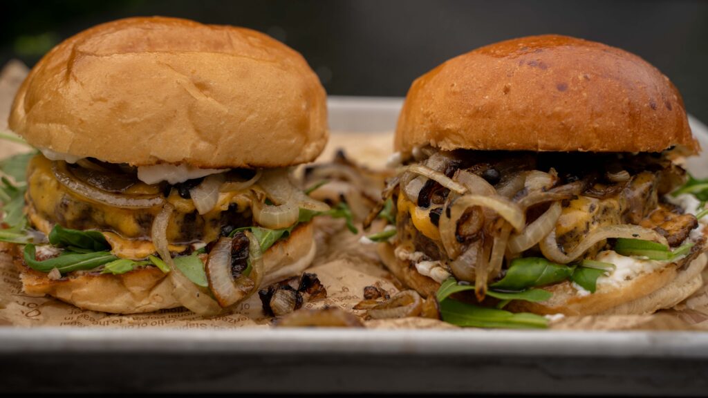 - Reduziertes Topping: Aioli, Rucola, karamellisierte Zwiebeln – perfekt abgestimmt, ohne das Fleisch zu überdecken.