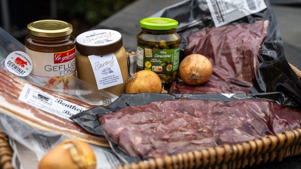 Wissenswert: Die Säure der Gurke harmoniert mit dem Senf, lockert die Fleischfasern leicht und gibt der Soße später Frische.