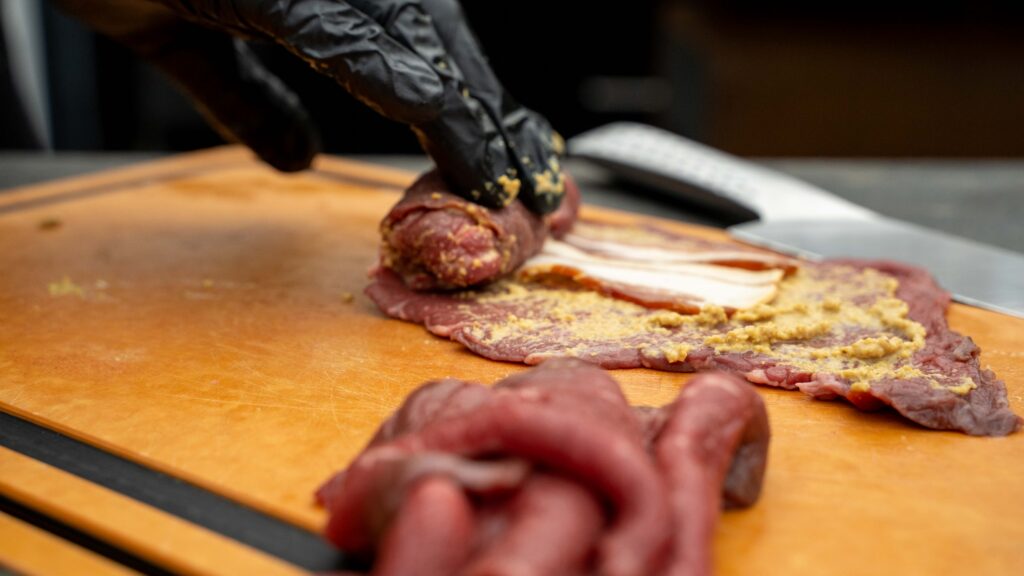 Das funktioniert besonders gut bei gleichmäßig dick geschnittenen Rouladen aus der Oberschale.