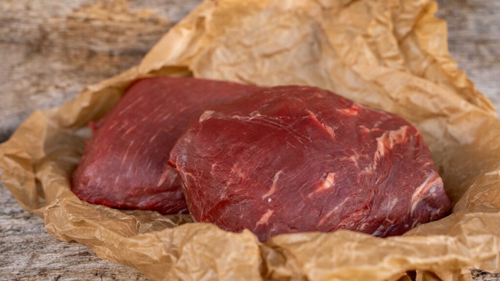 Hüftsteak stammt aus der Keule des Rinds und zeichnet sich durch eine feste Struktur und einen kräftigen Fleischgeschmack aus. Genau diese Eigenschaften machen es ideal für Spieße.