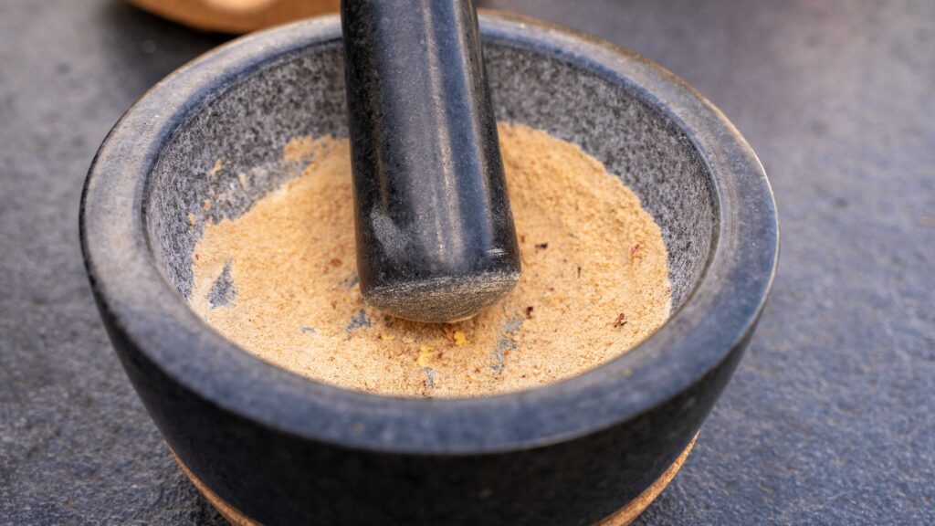 Gerade Granit kann Gerüche aufnehmen – das willst du vermeiden. Mörser einbrennen ist fast abgeschlossen.